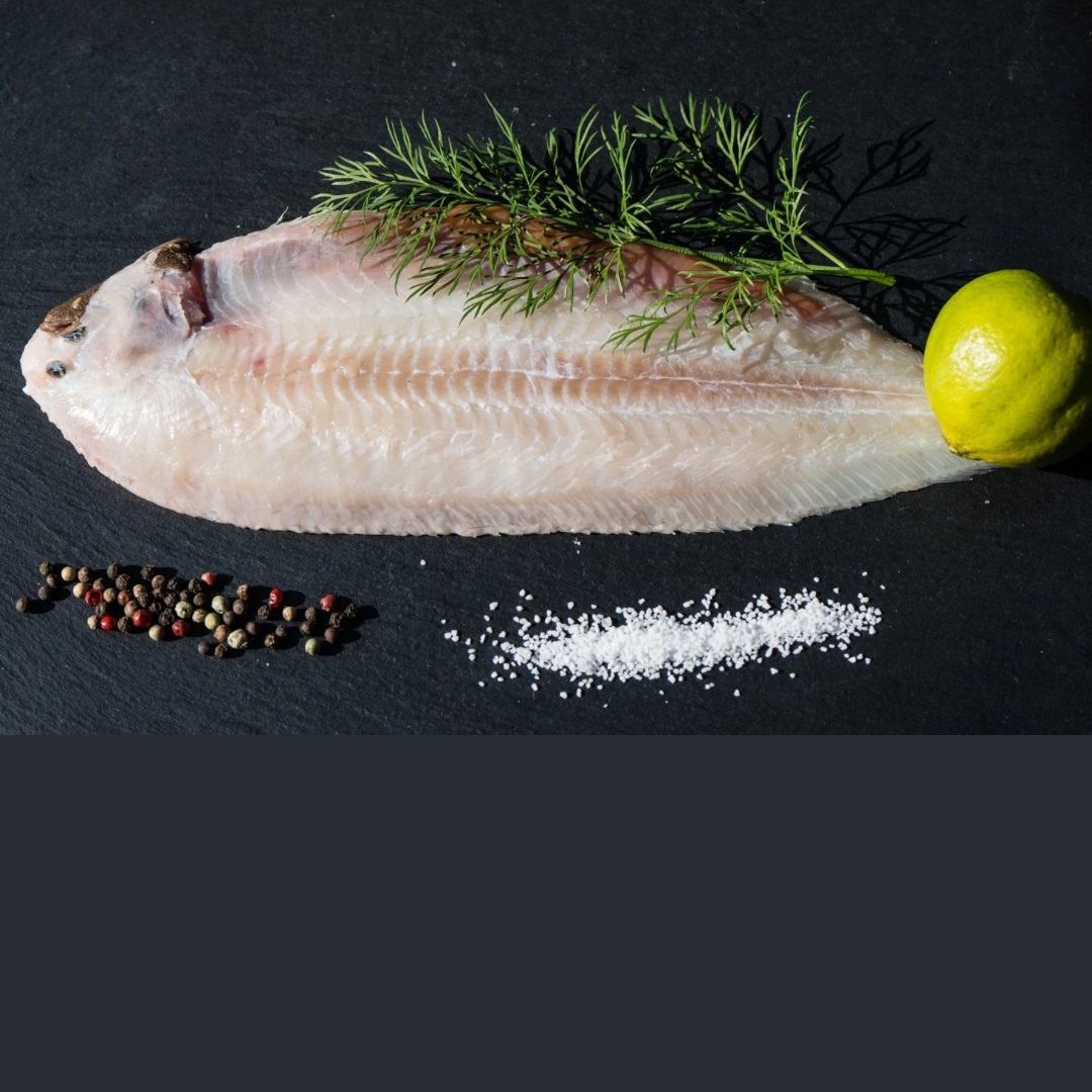 Dover sole is a wild caught, mild white fish with a delicate flavour and texture. It is commonly used for fine dining and sought after due to its low fat content and mild flavour. It can be pan seared, grilled, baked or poached. A classic dish featuring dover sole is “Sole Meuniere” where the fish is pan seared and served with butter, lemon and parsley.