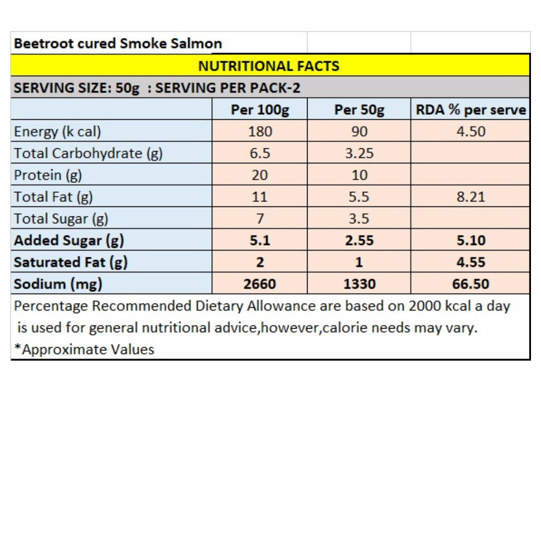 Home / Order Online / Smoked Salmon / Fresh Beetroot Cured Smoked Salmon Slices- (100g)