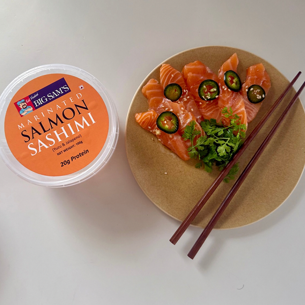 Fresh sashimi grade salmon expertly cut. Dressed in traditional flavours of citrusy Japanese yuzu and spicy jalapeno. This is a perfect protein fuelled meal or snack on the go. Alternatively it can be plated and served as an appetiser.