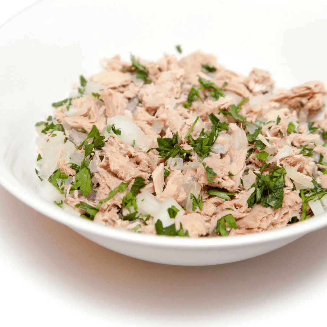 White Tuna chunks marinated in olive oil which adds to the flavour and moisture of the fish. Add this to salads, pastas or sandwiches- mix with cucumber, diced onion, a squeeze of lemon and herbs. There is approximately 20g of protein per 100g serve of tuna – making this a delicious and healthy snack or meal.